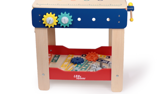 Leo & Friends Master Workbench – Adjustable Wooden Tool Bench with Play Tools for Kids 3+