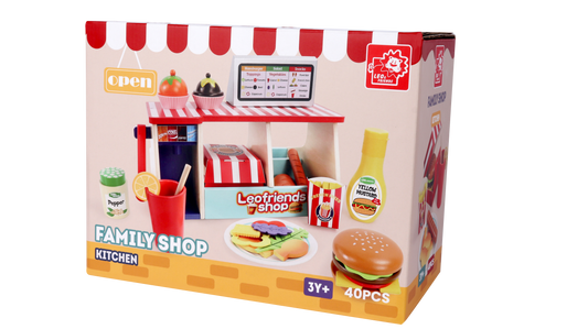 Leo & Friends 40-Piece Wooden Play Food Set – Snack Shop with Drink Dispenser Ages 3+