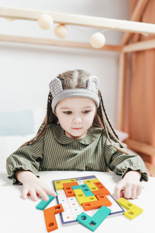 Leo & Friends Wooden L-Shaped Geometric Matching Game – 30 Challenge Cards, Magnetic Puzzle for Kids 3+