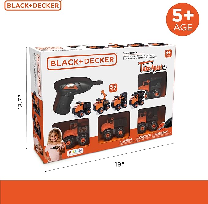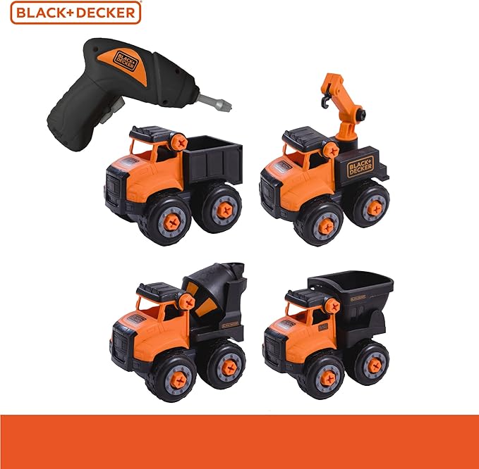 All-in-one set: This set includes all four of the Black and Decker Take Apart mini trucks, which means you don't have to buy them separately. Plus, it comes with an electric drill made for small hands to help with the assembly process.