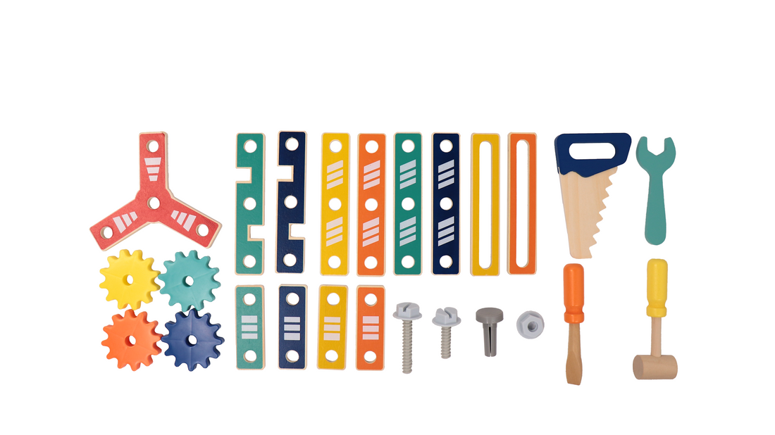 Get your little builder ready for action with the Leo & Friends Master Workbench – a sturdy wooden tool bench packed with safe play tools for endless construction fun. Complete with a hammer, saw, wrench, screwdriver, bolts, nuts, and gears, this set encourages imaginative role play while helping develop fine motor skills, hand-eye coordination, and problem-solving abilities. Perfect for solo play or group projects, it’s a hands-on way to inspire creativity and practical thinking. Crafted from responsibly sourced, non-toxic wood, this high-quality set is designed to last through years of enthusiastic play. Suitable for ages 3+.